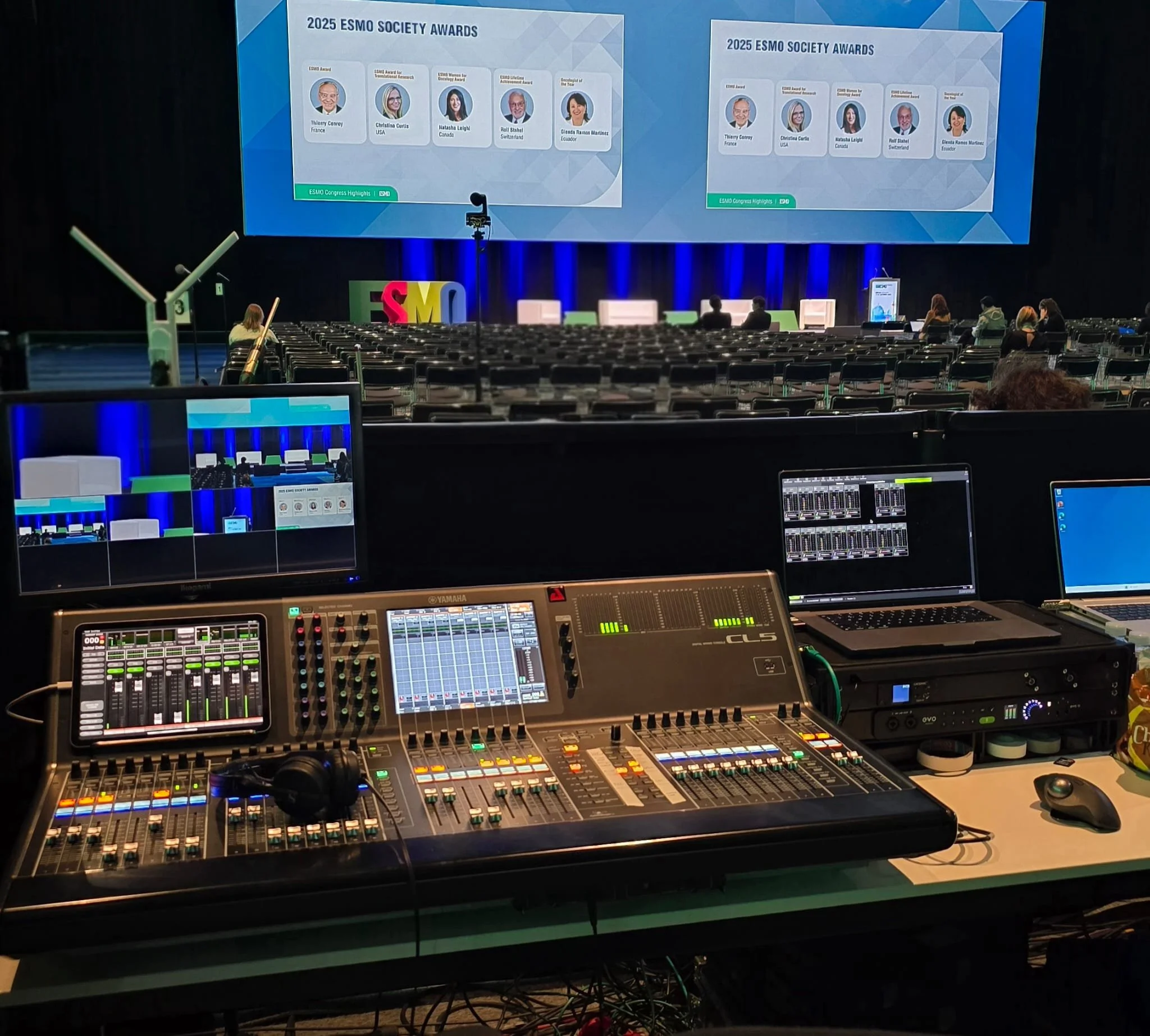 Ik heb mogen werken voor ESMO namens mijn opdrachtgever ACS. Tijdens dit internationale congres was ik verantwoordelijk als FoH engineer voor een zaal met zo’n 3.500 bezoekers. Vanuit mijn positie midden in de zaal zorgde ik ervoor dat alle sprekers, panelleden en video’s duidelijk en natuurlijk klonken — een flinke uitdaging in zo’n grote ruimte.